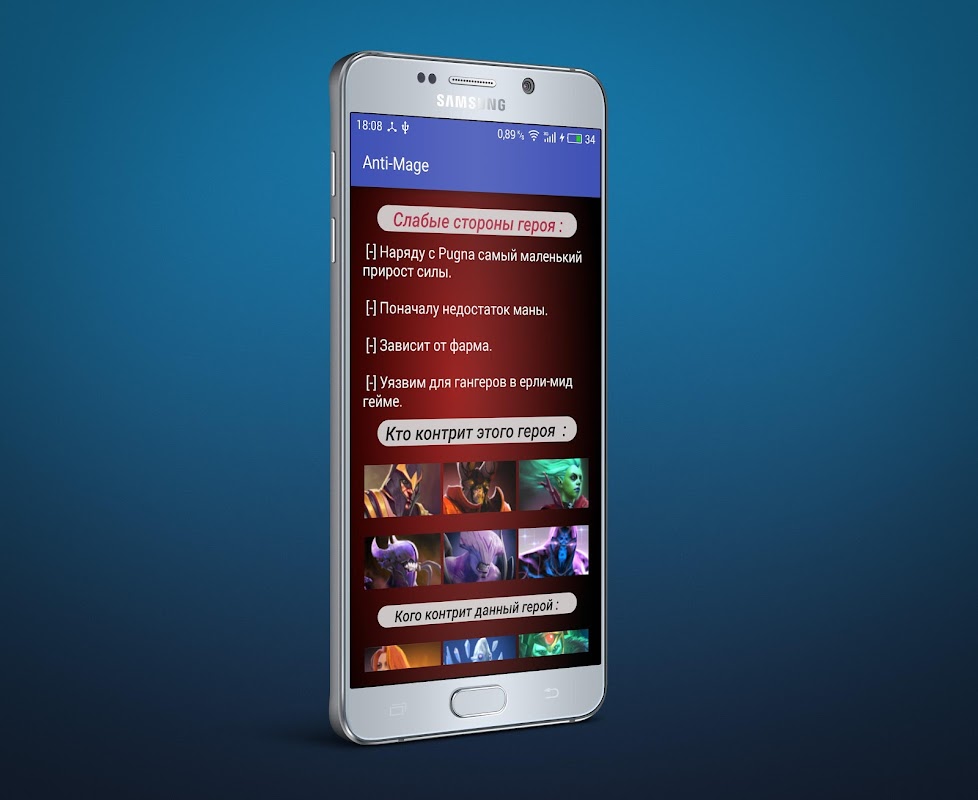 Данное приложение разработано игроком для игроков на основании многолетнего опыта игры в Dota и Dota 2. Оно поможет Вам с выбором оптимального пика героев. Познакомит с некоторыми особенностями игровой механики. И в целом будет очень полезным дополнением для Вас, как для игрока Dota 2. В этом приложении собраны все самые популярные контр-пики героев, универсальные контр-пики. Также приложение содержит много полезных советов для начинающих игроков.