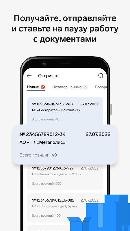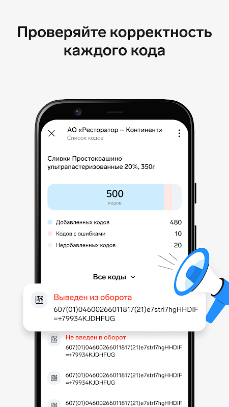 Lavora con le merci contrassegnate utilizzando il tuo smartphone o TSD. Potrai effettuare l'accettazione e la spedizione, nonché ritirare la merce dalla circolazione.