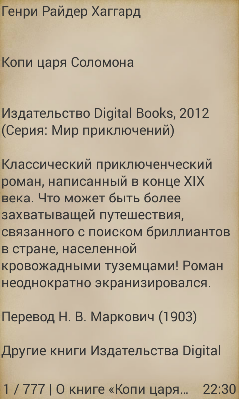 Se scrivi libri e desideri vedere il tuo lavoro sotto forma di un'applicazione per dispositivi mobili basata sul sistema operativo Android, contatta la casa editrice Digital Books ([email protected]). Per i dettagli, consultare il sito web dell'editore http://webvo.virenter.com/forauthors.php