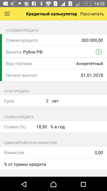 • 1 Schermata Кредитный Калькулятор с Комиссиями