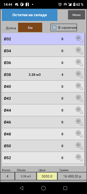 Conta cubi di legno tondo secondo le tabelle GOST.