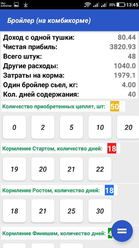 быстро посчитать сколько нужно денег на корма для птицы,