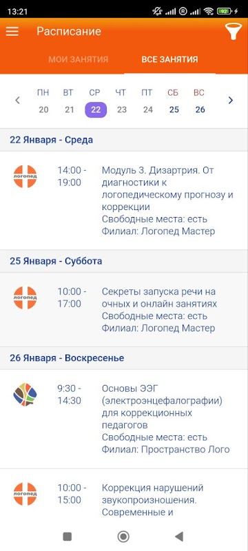 Applicazione mobile per la registrazione a seminari e master class presso i centri di formazione "Logologo Master" e "LOGO Space".