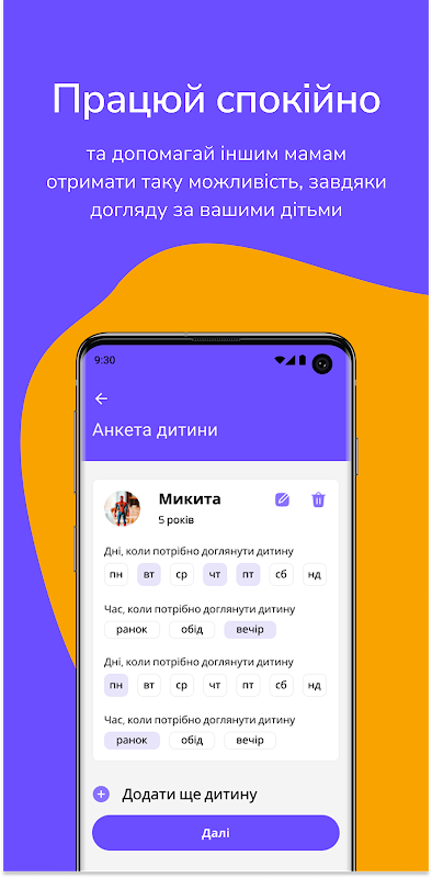 Ti aiuteremo a trovare mamme nelle vicinanze, con le quali potrete prendervi cura insieme dei vostri figli. Raggruppa i bambini in gruppi e prenditi cura di loro a turno durante il tempo libero.