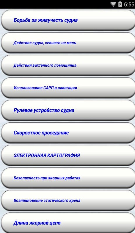 Prove gratuite di applicazione moryakam.V Manuale marinaio qualificato liberi argomenti di studio allineati: Dispositivo sudna.Vahtenny matros.Organizatsiya il servizio di guardia sluzhby.Elementy navigatsii.Gidrometeorologiya effetti praktika.V mare informativi disposti temi incomplete: Dispositivi delle navi. Consideriamo la lotta per la sopravvivenza attrezzature di soccorso sudna.Sudovye.