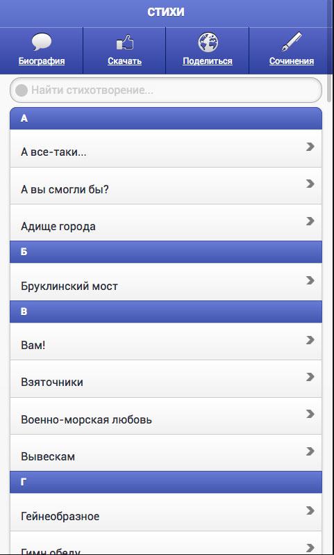 Приложение содержит все стихотворения В. Маяковского с анализом каждого стихотворения. Так же в приложении вы найдете школьные сочинения по теме - Владимир Маяковский. Все для 6 класса, 7 класса, 8 класса, 9 класса, 10 класса, 11 класса школы.