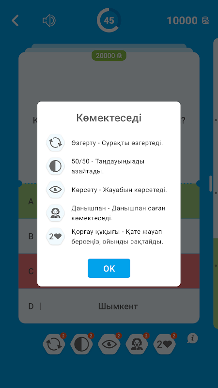 So what are you waiting for? Let's download and play this virtual tool to test and increase your knowledge about Kazakhstan in your mother tongue (Kazakh language).