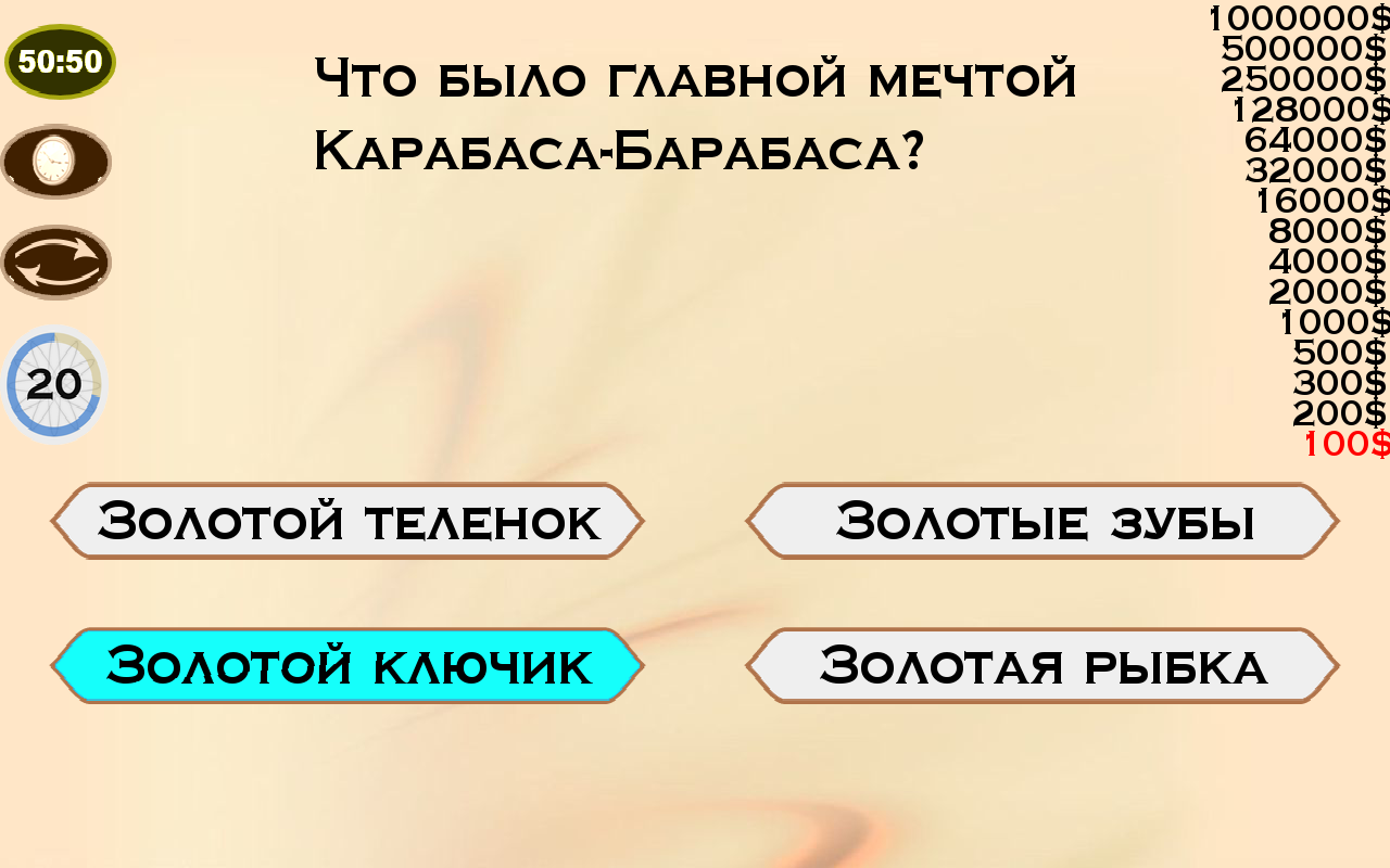 Обратите внимание, что в отличии от других игр "Миллионером?" у нас вы можете играть абсолютно бесплатно независимо от успехов в игре. Количество вопросов превышает пять тысяч и уверенно стремится к десяти.