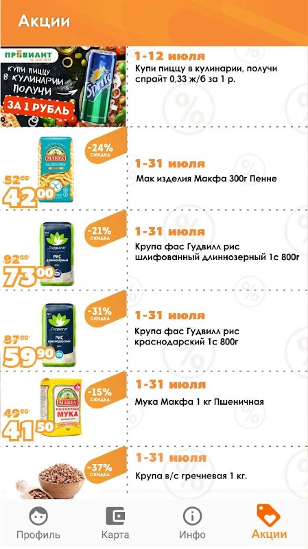 Moroshka Usinsk - un'applicazione mobile della catena di supermercati Proviant!