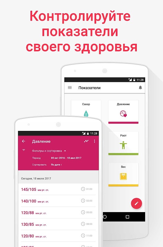 La nostra applicazione ti aiuterà a non perdere nulla: manterrà un programma di perdita di peso (perdita di peso), manterrà la misurazione del polso e della pressione. Il glucosio (glicemia) sarà visibile su un grafico separato e non dimenticare di prendere le pillole aiuterà il promemoria incorporato. Stai tranquillo: quando l'indice di massa corporea ritorna normale, puoi dimenticarti delle pillole!