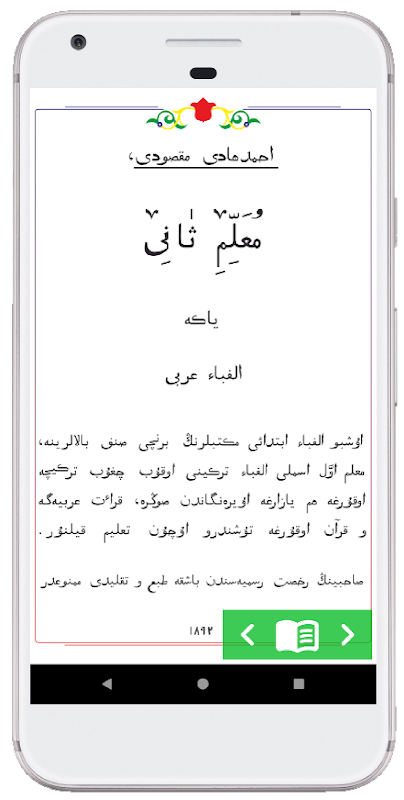 Ukuchylarga tәk'dim ittelә torgan oly galim һәm insegnante Әkhmәtһadi Maksudinyң "Mөgallim sәni" issemle kitaby, berenche tapkyr 1892 elda nәsher Itelep, tartari mөselmannary arasynda kiң taralysh tapkan. Үzeneң gadi tөzeleshe һәm shul uk vakytta yugary dәrәҗәdәge tecniche belәn ul bүgenge kөngә kadәr dөnyakүlәm analoghi di bulmagan ber popolare dәreslek bulip sanala. Soңgy ellarda "Mөgallim sәni" non Korәni Kәrimneң Kazan basmasy garәp fonts on tours kilmәgәn bashka tөrle fontlar ben chygaryluy, originali bulmagan өstәmәlәr kertelүe, texta bulzrәerruner, ternelrta bulrenr Shuңa kүrә "Mөgallim sәni" kitabynyң әlege nөskhәse, 1892 elda basylyp chykkan originalsna tәңgәl kiterelep, yagartylyp chygaryla. Bu dәreslektәge garәp font 1832 elda Kazan shәһәrendә basylgan Korәn kitabyndagy font type tayanyp eshlәnelgn. "Mөgallim sәni" isemle uku әsbaby tiz arad Korәn ukyrga өyrәnergә telәgәn tөrle yashtәge keshelәr өchen tәkәdim ittelә.