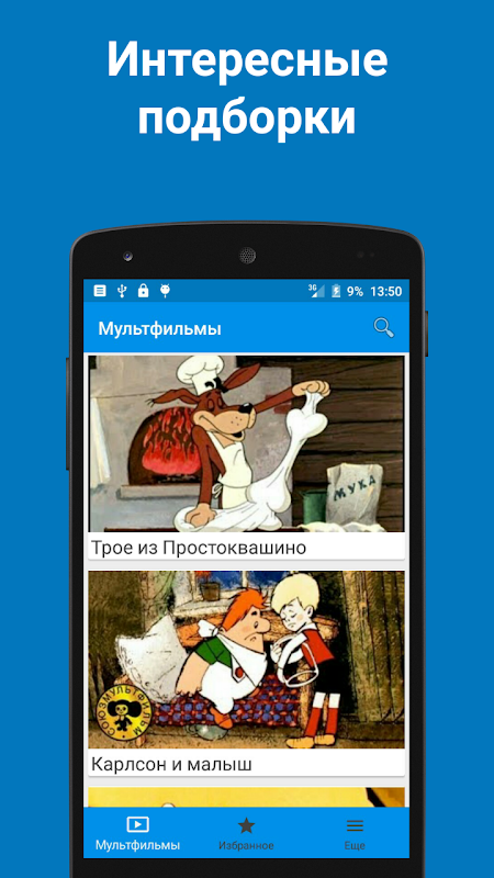 - возможность добавлять полюбившийся вам мультфильм в раздел Избранное