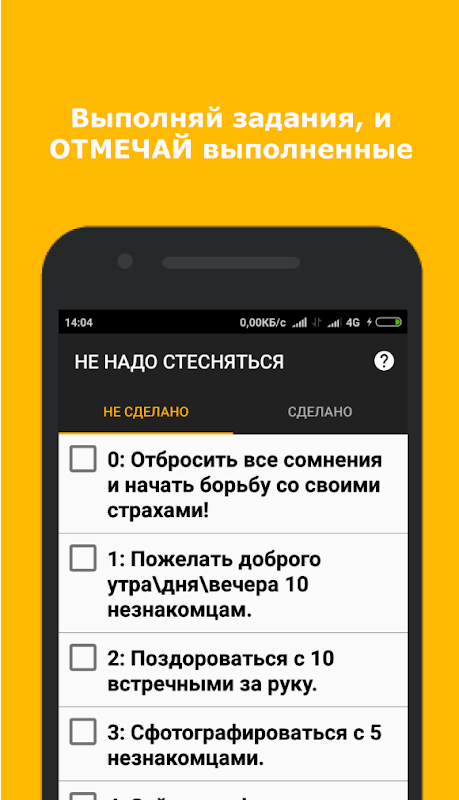 Это приложение нацелено на борьбу со своими страхами, со страхами быть отвергнутым, со страхами быть не таким как все, со страхами совершения чего-то странного (для обычных людей, но мы то с Вами не обычные)!