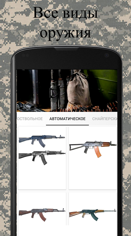 Catalogo delle armi da fuoco. Qui troverai informazioni complete su qualsiasi tipo di arma da fuoco e di piccolo calibro, non solo modelli russi ma anche dall'estero. Fucili, carabine, pistole, revolver, armi a canna liscia, fucili mitragliatori (pp) e molto altro troverai in questa applicazione.