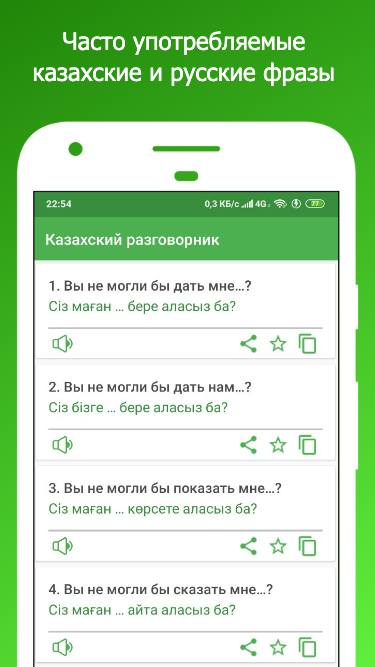 Если вы хотите изучать казахский язык с помощью русского языка или ж обратно то это прилоджение. Тут собраны часто употребляемые казахские e русские фразы для повседневной жизни.