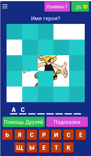 В этой игре картина покрыта черепицей. Игрок должен угадать картину, раскрывая как несколько плиток, как это возможно, чтобы набрать больше монет.