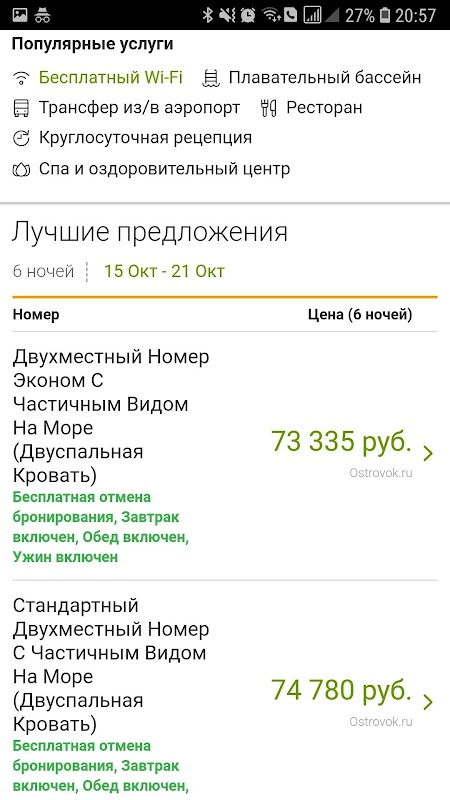 Successivamente, fai clic su "Specifica i prezzi", dopodiché il sistema analizzerà le offerte dai sistemi di prenotazione e in pochi secondi fornirà i risultati della ricerca. Le opzioni di alloggio ottenute possono essere classificate per prezzo, valutazione, popolarità, distanza dal centro città.