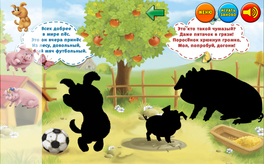 Если тебе захочется снова сыграть со зверятами на этой картинке, нажми на кнопку «Играть заново».
