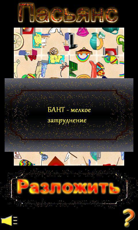 Представляем вам один из видов индийского пасьянса - пасьянс в картинках. Загадайте период времени и нажмите кнопку "Разложить". Появится колода из пяти рядов карт с половинками изображений. Совпавшие картинки покажут события на всем протяжении загаданного периода, разбитого на пять частей (по строкам).