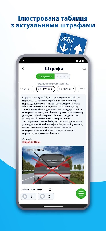 Il testo del Codice della Strada è tratto dal sito web ufficiale della Verkhovna Rada dell'Ucraina - Risoluzione del Consiglio dei Ministri dell'Ucraina del 10 ottobre 2001 n. 1306 "Sul Codice della Strada". (https://zakon.rada.gov.ua/laws/show/1306-2001-%D0%BF#Text). L'applicazione non rappresenta un ente statale.