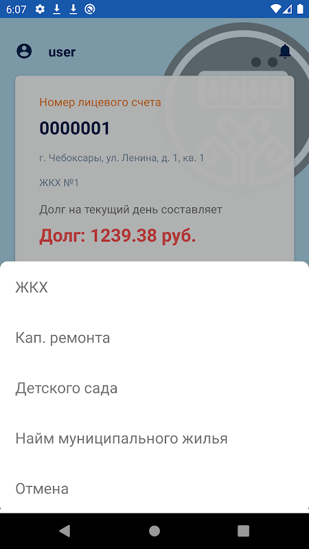 Conto Personale - un servizio comodo ed intuitivo di entrare letture contatori, ricevute di pagamento di servizi di utilità e la consegna di reclami e ricorsi alle società di gestione di Chuvashia.