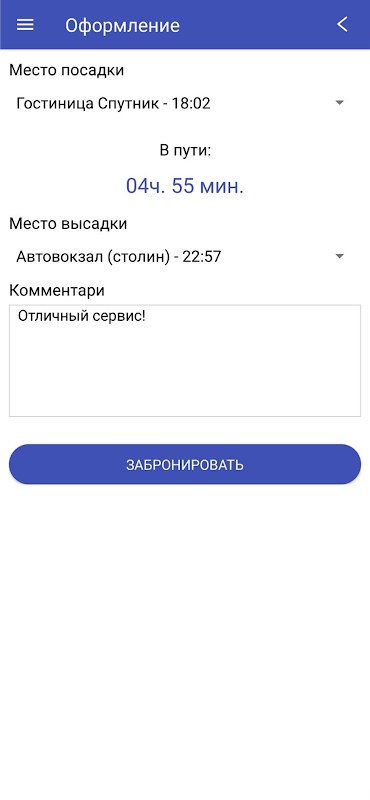 Приложение для бронирования билетов пассажирских перевозок по направлениям : Молодечно - Минск