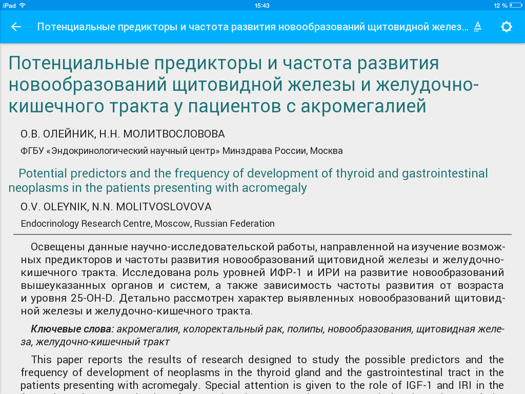 Старейший научно-практический отечественный журнал, основанный в 1955 году. Освещает фундаментальные теоретические проблемы эндокринологии, последние достижения отечественных и зарубежных исследований, прикладные вопросы, способствующие внедрению в практику новейших научных разработок.