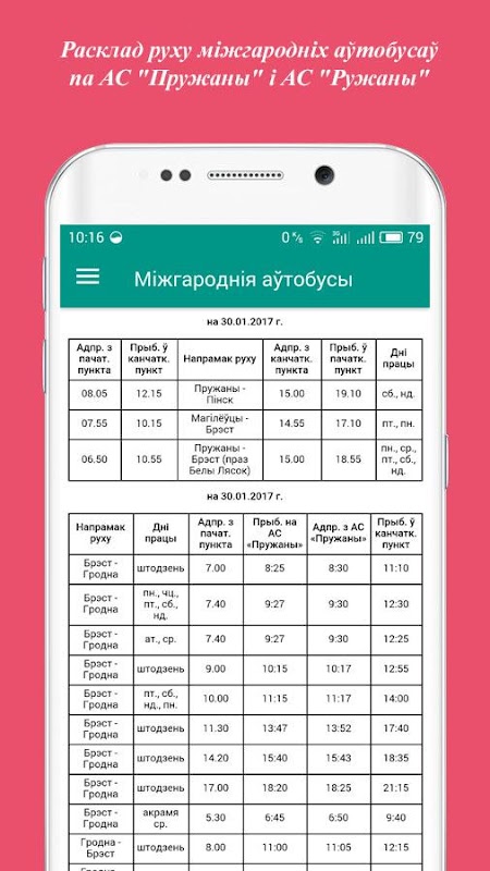 ~ прыгарадных і міжгародніх аўтобусаў па АС «Пружаны»