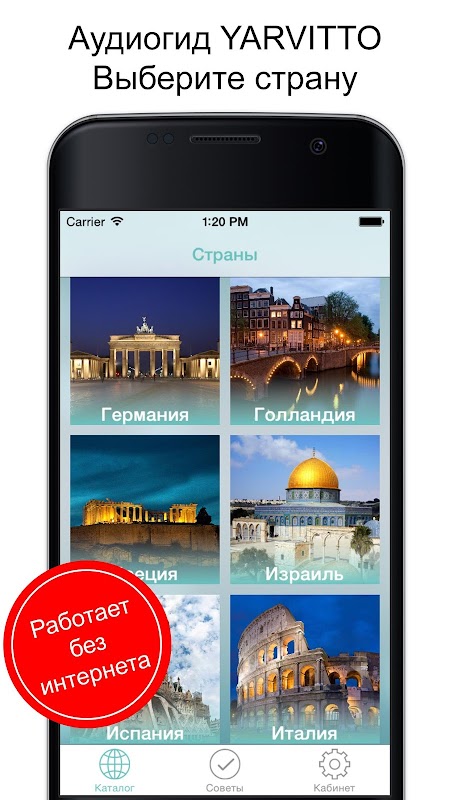 Si tratta di una vera e propria alternativa alla guida di consueto giro. Si scarica il YARVITTO guida, scegliere un tour e andare a fare una passeggiata, mentre YARVITTO guidarvi, racconta tutto sui luoghi visitati, mostra fotografie e una mappa. E tutto questo senza una connessione internet.