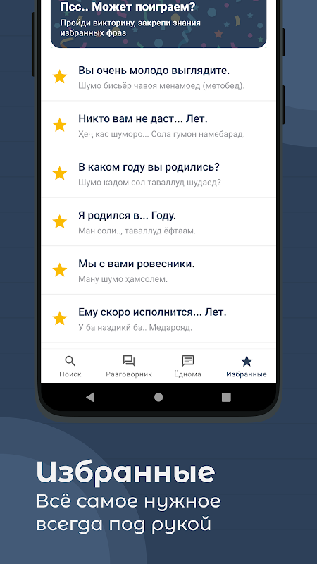 ✅ Farhang è un'applicazione multifunzionale che combina un dizionario, un frasario russo-tagiko e uno solo (una raccolta di regole per la lingua tagika).