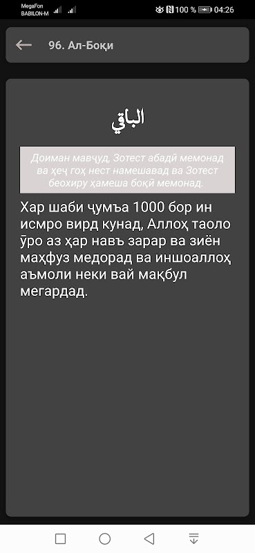 Malumotoi mufassal dar borai Nomhoi Zeboi Allah.