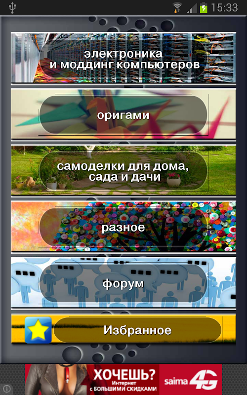 Для любителей мастерить и делать своими руками, мир интересных самоделок. Электроника, оригами, самоделки для дома и дачи, и многое другое. Пошаговые описания с детальными фотографиями помогут быстро понять как сделать конкретную самоделку. В приложении присутствует функция увеличения фотографий, что делает её еще более удобной в использовании. Также вы сможете зайти на онлайн форум, где очень много информации, которая часто обновляется. Научись делать простые и интересные вещи своими руками.