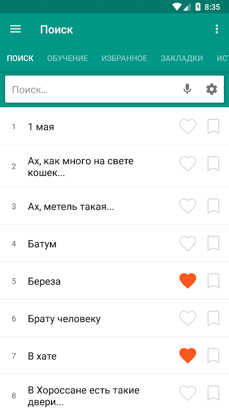 • Вы можете добавлять отмеченные слова в список избранных.