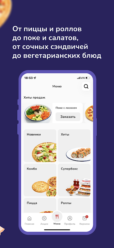 Nel menu troverete più di 40 tipi di pizza, oltre a panini, sushi, poke, panini, insalate, dessert e bevande per soddisfare i vostri gusti.