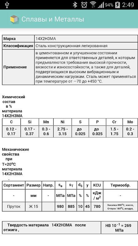 Версия приложения без рекламы - https://play.google.com/store/apps/details?id=com.collosteam.alloysandmetalspro