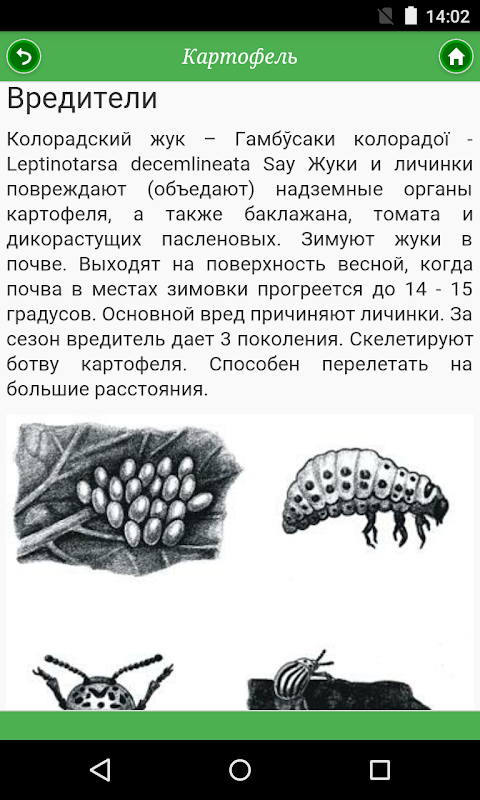 Il manuale fornisce informazioni su promettendo protezione delle colture, l'uso corretto e sicuro contro i parassiti, le malattie e le erbe infestanti. Per lavorare con la directory non richiede una connessione a Internet, dal momento che tutto il suo contenuto viene pompato con l'applicazione.