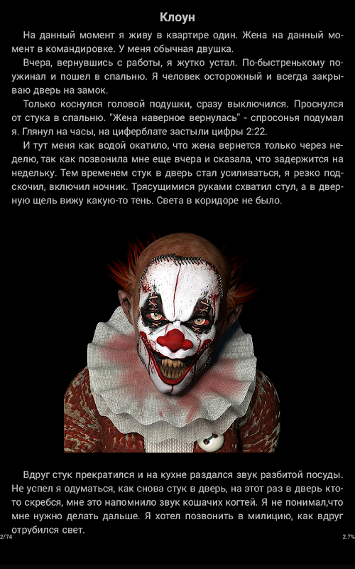 Мы собрали самые интересные страшные истории и рассказы от первого лица и от авторов популярных книг ужасов. Вы обязательно найдете любимуюю историю, которая будет интересна не только вам, но и вашим друзьям. Здесь только правдивые реальные истории и байки на ночь. Если вы любитель читать Страшилки - то это лучшее приложение специально для тебя. Эта книга ужасов еще долго будет щекотать тебе нервы после прочтения. Погрузись в мир экшена, где есть ужастики (ужасы) и захватывающий мотив рассказа.