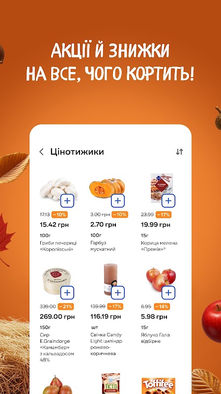 А ще застосунок вбрався в осінні барви та став ще більш затишним! Ніяких бууу — лише яскраві гарбузики та осіння мелодія вигідних покупок.