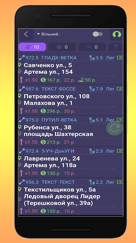 - Lavora in aria libera con la possibilità di filtrare gli ordini per punti di partenza, punti finali, distanza dall'ordine, tipi di pagamento e tariffe.