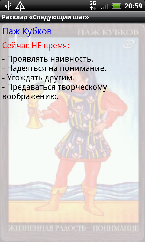Когда вы будете готовы начать гадание, нажмите на волшебный глаз Таро. Далее перетасуйте колоду, встряхнув ваш телефон или планшет. Для просмотра интерпретации карты необходимо кликнуть на карту.