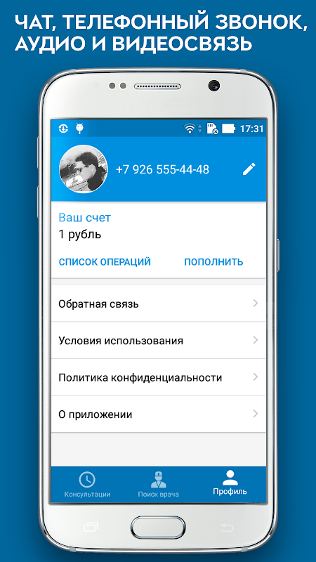 ОБРАЩАЕМ ВАШЕ ВНИМАНИЕ: любые способы обмена информацией с Врачом (включая аудио и видеосвязь, обмен документами, изображениями и любыми другими файлами) посредством данного приложения не являются медицинской услугой. Наши врачи оказывают информационную услугу и не ставят диагноз, не назначают лечение и не выписывают лекарства. Если по вашему мнению произошло обратное – просим сообщить об этом при помощи формы обратной связи. Если Вы чувствуете себя нездоровым, мы рекомендуем обратиться за консультацией в медицинскую клинику.