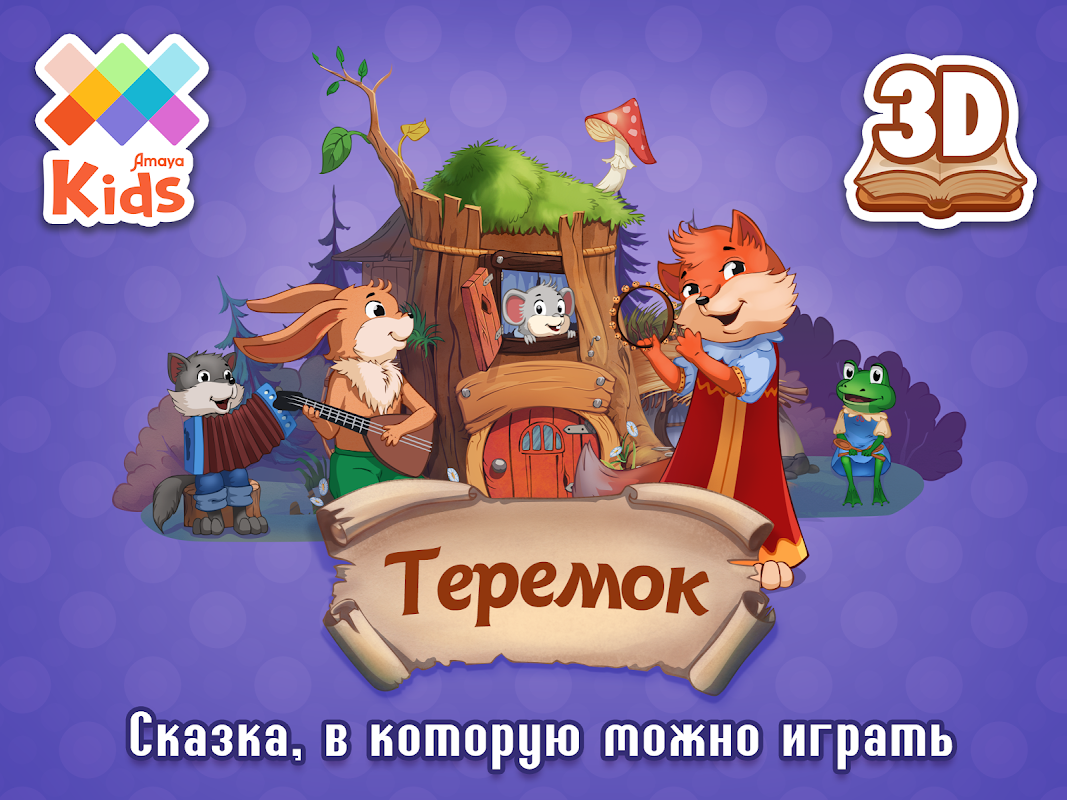 Добрая сказка «Теремок» входит в популярную серию интерактивных книжек (Репка, Золушка, Три медведя и другие), созданных AmayaKids для детей от 3 до 8 лет и может стать прекрасным дополнением вашей детской библиотеки.