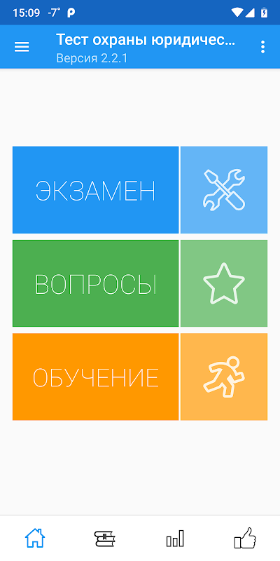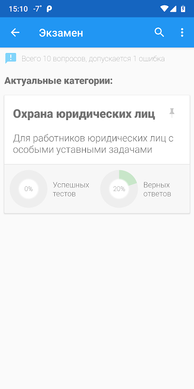 - режим "Обучение", который позволяет поэтапно изучить все вопросы выбранной категории