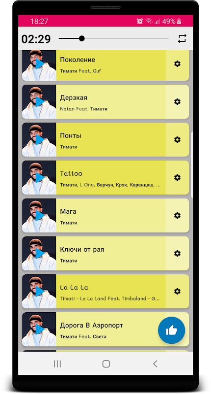 приложение "Тимати песни - без интернета" содержит лучшие песни Timati