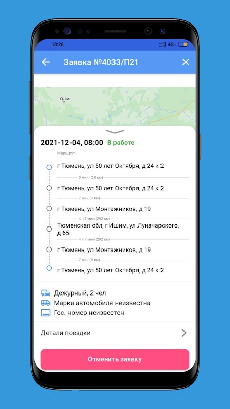 Applicazione per l'organizzazione del lavoro di trasporto del governo della regione di Tyumen
