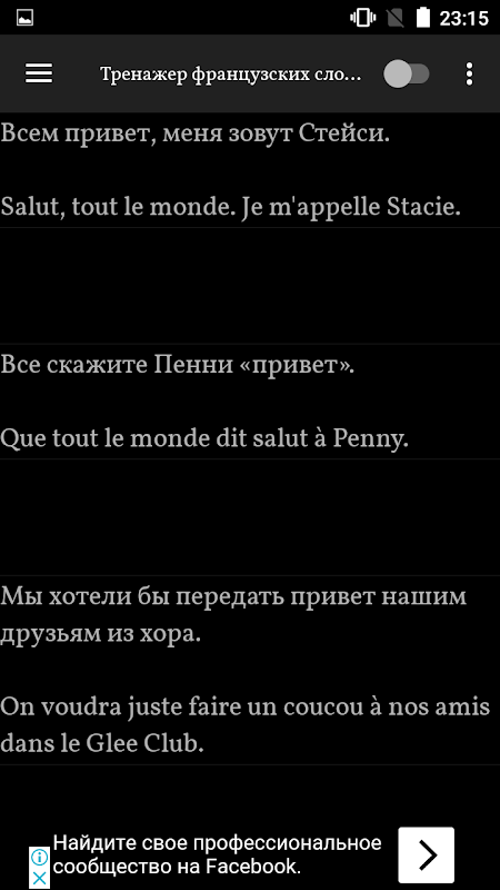 Simulatore di parole francesi. App per il francese gratuitamente.