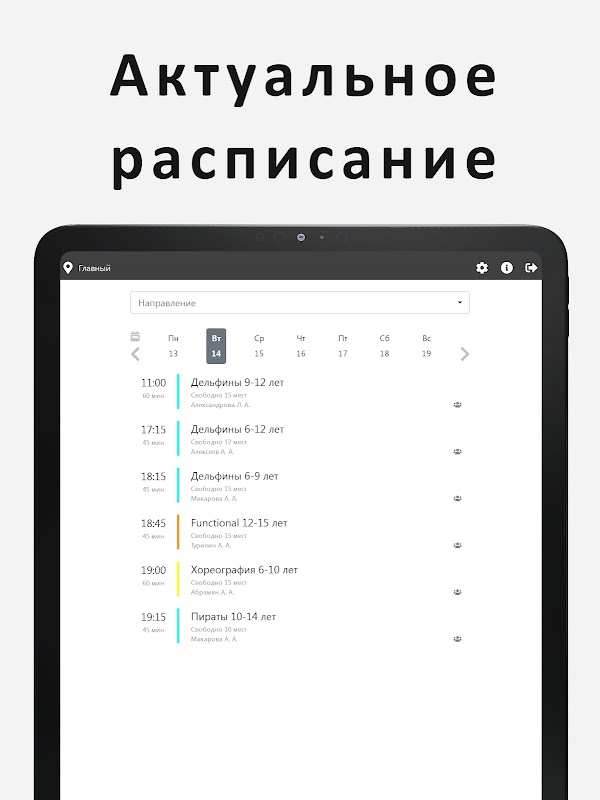 Utilizzando l'applicazione, puoi visualizzare il programma, iscriverti alle lezioni, monitorare il tuo abbonamento attuale e le tue visite al fitness club Triumph.