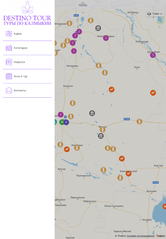 Inoltre nell'applicazione troverai un breve riassunto del tempo, le ultime notizie turistiche e le informazioni di contatto per il tour operator che organizza tour unici in Kalmykia.