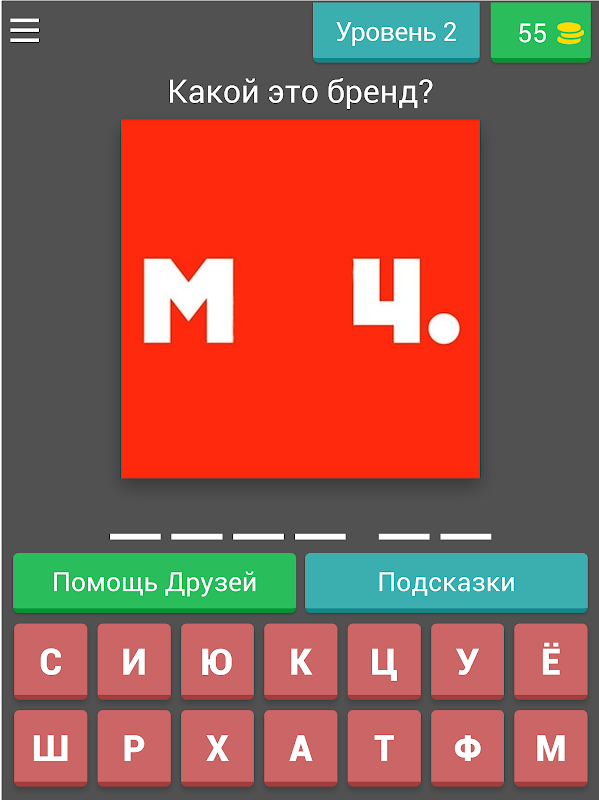 Суть игры заключается в том, чтобы угадать название бренда по логотипу, составив слово из букв, представленных на игровом поле.