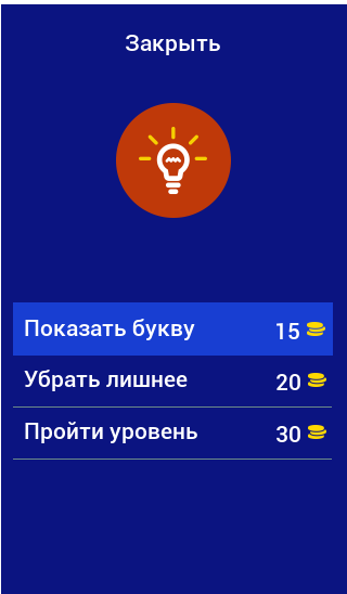 "показать букву", "убрать лишнее", или "пройти уровень". Также можете